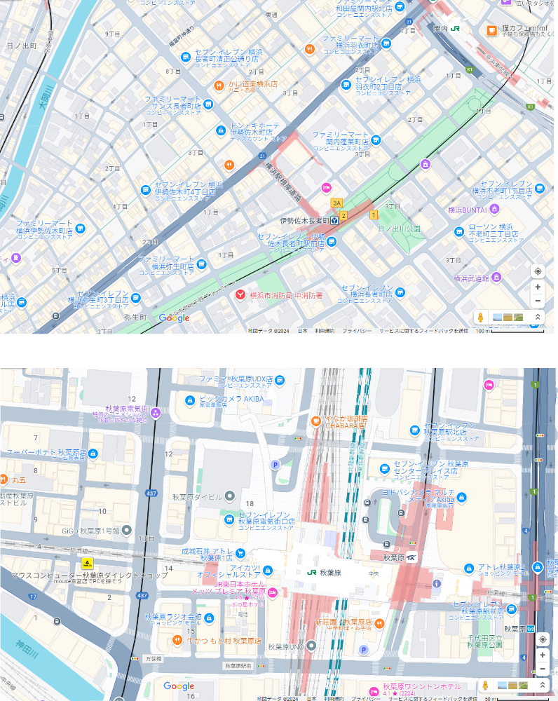【関内ルーム】※画像上・JR根岸線 関内駅 南口より徒歩約12分・横浜市営地下鉄ブルーライン 伊勢佐木長者町駅 4B出口または5番出口より徒歩約4分※詳しくは予約確定後にお伝えします♪【秋葉原ルーム】※画像下・JR線/つくばエクスプレス 秋葉原駅 電気街口より徒歩約4分※詳しくは予約確定後にお伝えします♪